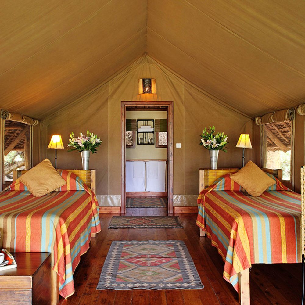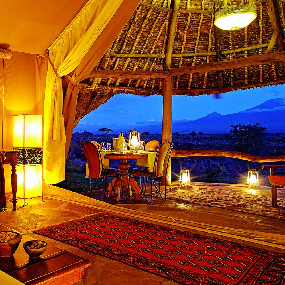 Tortilis Camp is named after the flat-topped, umbrella thorn tree, the Acacia Tortilis, and embraces a hill in one of Amboseli’s areas of Acacia Tortilis woodland. Located in a private conservancy bordering the national park, game drives, walks, sundowners and bush meals take place both inside the national park and in the conservancy, where guests enjoy exclusivity.