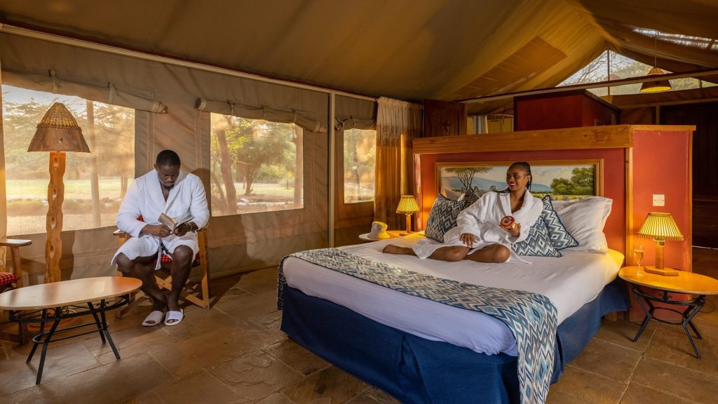 Nestled in the heart of the Amboseli National Park right next to Kimana Gate, the stylishly-built lodge comprises 60 luxurious and spacious tents and 2 Family Houses carefully spread across the property, offering stunning view of snowcapped Mount Kilimanjaro, Africa’s tallest Mountain. Sentrim Amboseli features Maasai culture-inspired designs, décor and craft pieces giving lodges an authentic African safari feeling. We guarantee our guests exceptional view of the wildlife including the marauding mammoth elephants and the majestic lions just to name but a few. We have left nothing to chance to ensure your stay is exceptional and memorable, your dining world class and the service exemplary.